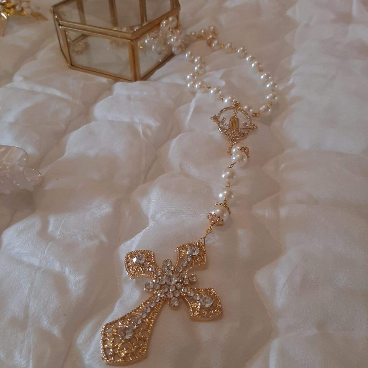 Terço de Noiva com Nossa Senhora de Fátima 24,00 € Desconto de %. Partilhar Comprar Contactar SKU: 100 Disponivel em dourado ou prateado com pérolas Tags terçoterço de batismoterço de noivaterço de casamentoCASAMENTOartigos de casamentoartigos religiosos Características